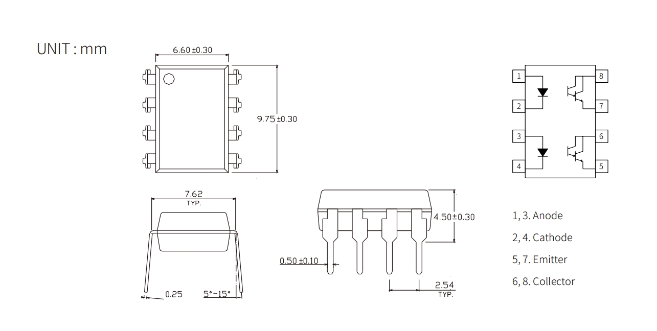 | KL825 | DIP8 | 9.75x6.6x3.5 | 1.2 | 40 | 1 | 1 | 600~7500 | 60 | 53 | - | - | -55 | +110 | 5000 |